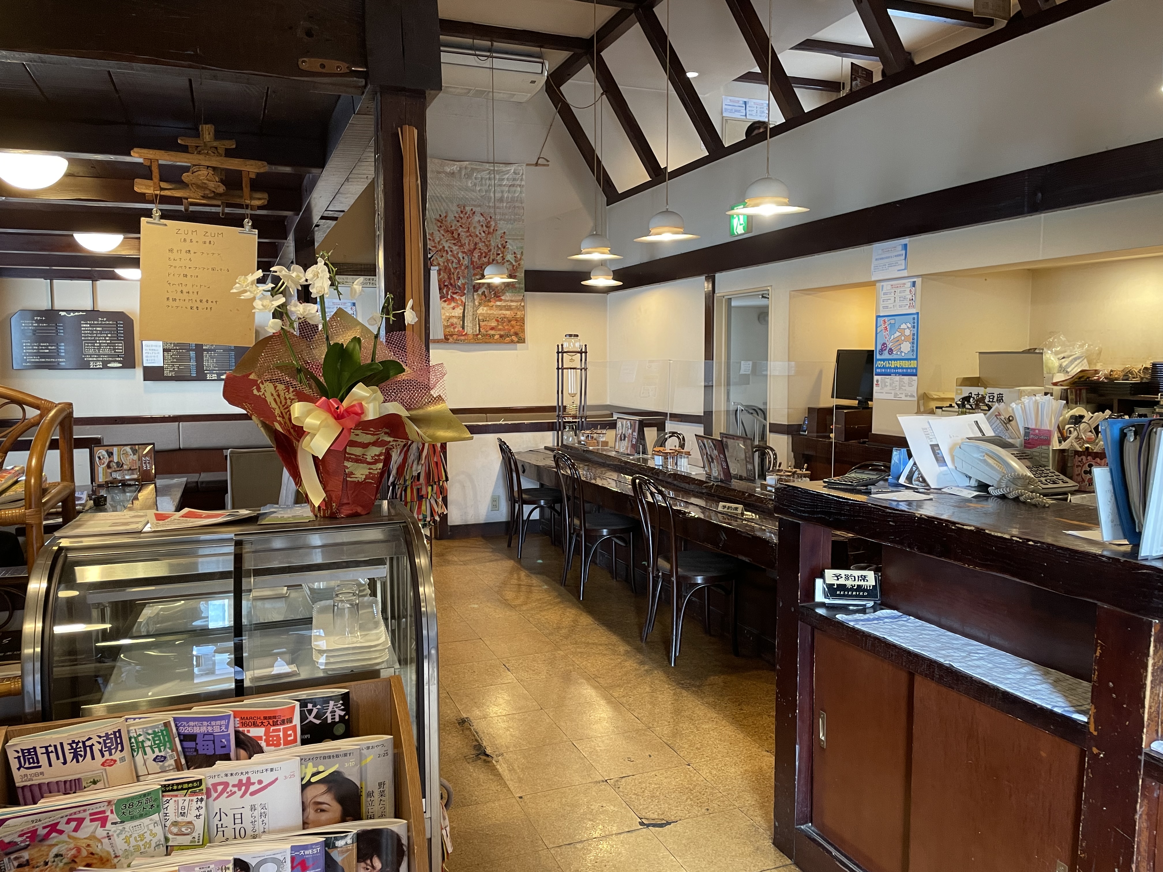 天井が高く開放感のある店内。雑誌を手に取りゆっくりコーヒーを飲む常連客らしき方が多い印象です。